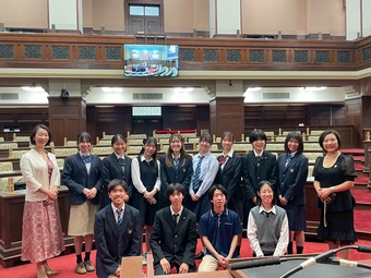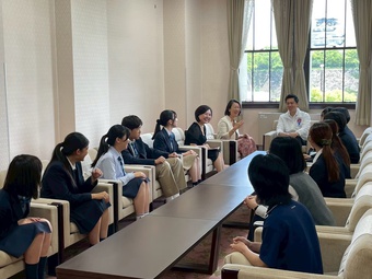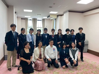 さらにプログラム終了後には、大阪府庁で吉村洋文知事への報告会が行われました。宮地純さんも同席され、参加生徒一人ひとりが学びや感想を発表しました。吉村知事からは「万博という舞台が若者にとって未来のリーダーとして輝くきっかけになったことは素晴らしい」と励ましの言葉をいただきました。