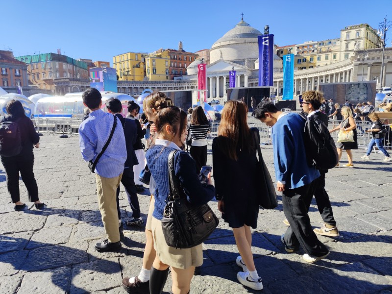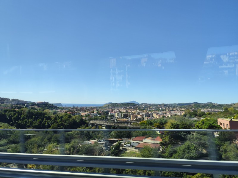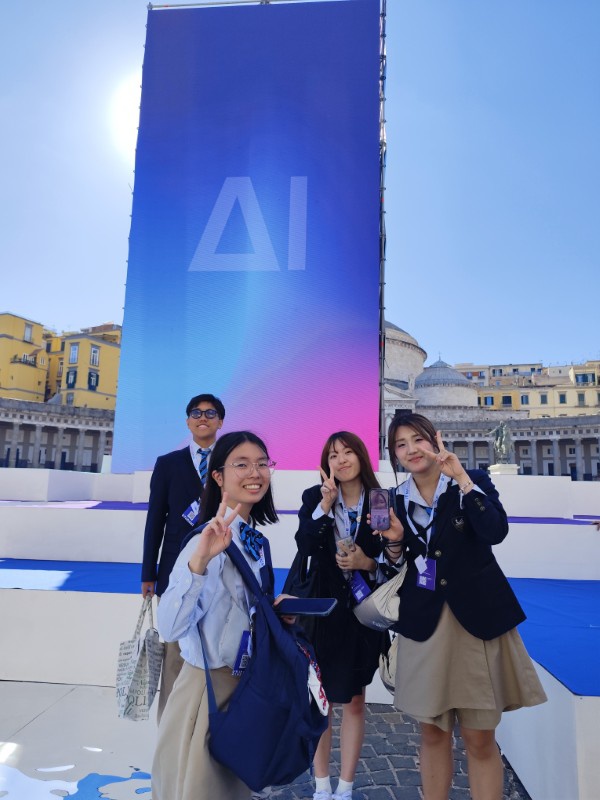 大阪・関西万博期間中に開催されたイタリア教育省主催のワークショップに参加させていただいたご縁から、今回10月8日~13日までイタリア・ナポリで開かれる「Next Generation AI Summit」に本校の生徒8名が招待されました。時差と開催受付の関係で日本時間の10月6日の夜に日本を出発し、アブダビ空港でトランジットをして現地時間10月7日の朝にローマ空港に到着し、そこからバスで移動しお昼頃にナポリに到着しました。ほぼ24時間の移動時間となりました。日本出発から、10月8日の海外からの参加者向けの開会式までの様子をお知らせします。