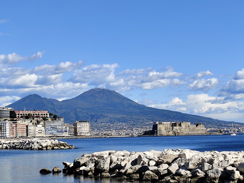 ナポリ到着後は、昼食を求めて一緒の便で来た関西インターの生徒・先生方と一緒にナポリ散策。地中海の気候の中、美しい街並みを見ながらの散策は、一行の心を躍らせました。ナポリということで、ピッツェリアで昼食をとりました。ナポリのお勧めということで多くの生徒はマルゲリータを注文、舌鼓を打っていました。