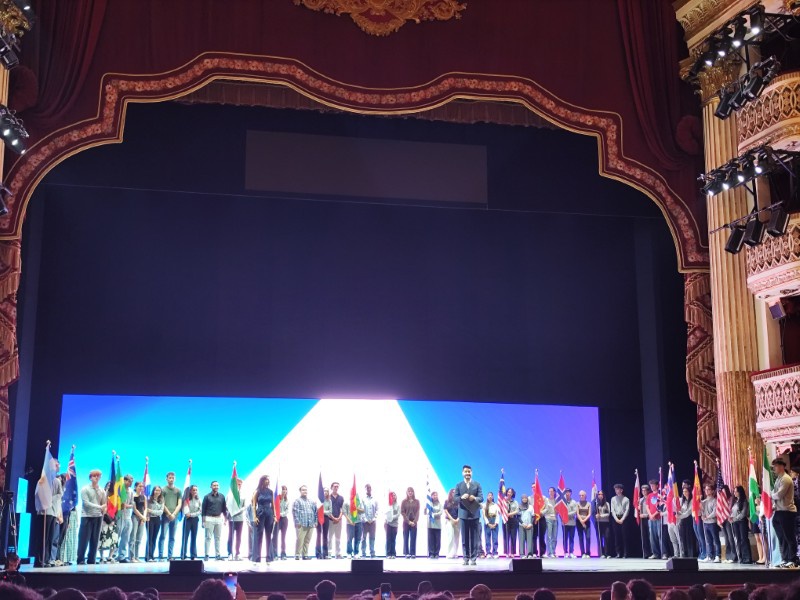 今回参加している国と地域の代表が登壇しましたが、本校からは、日本、フィリピン、韓国の代表として3名の生徒が登壇しました。セレモニーでは、昨日の海外からの参加者でも行われた演目もありましたが、オペラの歌唱が加わり非常に豪勢なセレモニーになりました。