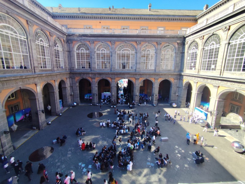 イタリア・ナポリで開催されているNext Generation AI Summitのイタリアの学校関係者も含めた開会式でした。午前中は、英語話者対象のセッションが行われ、Unescoの研究者や、各国の代表が、それぞれの立場、視点からAIの教育への利活用についての現状を紹介しあいました。国によっては、中高生の段階で、AIについてのカリキュラムが実施されており、AIとは?ということから、どのように使うべきか、使う上でどのようなスキルが必要か、などさまざまな講話がありました。