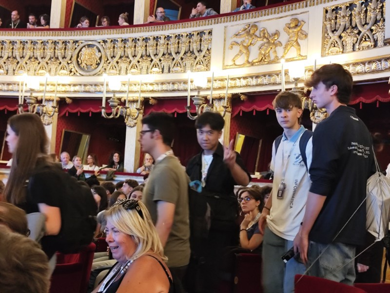 午後は、伝統のあるホールでオープニングセレモニーが開催されました。セレモニーからイタリアの学校関係者も参加して行われました。このタイミングから、生徒はそれぞれ指定されたグループに分かれての行動になりました。今回、高校生のグループはなんと60グループ。1グループが7~8名くらいとなっているので、高校生だけで約500名。想像より多くの高校生が集まっていて驚きました。