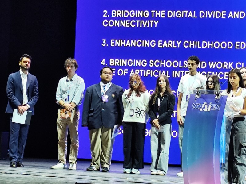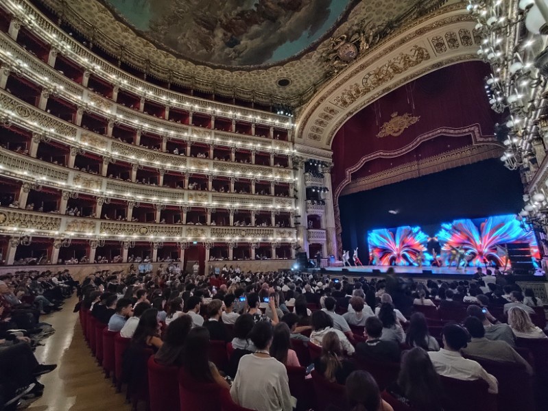 午後は全体の閉会式でした。開会式同様、非常に豪勢に、オペラなどイタリアならではの演出も取り入れられた素晴らしいものでした。高校生からの提言では、本校の生徒も代表して声明を読み上げました。出発前の短い時間でまとめているので、写真を多めに掲載しており、熱気をお伝えします。また、この様子も、開会式もYOUTUBEでライブ配信されていました。