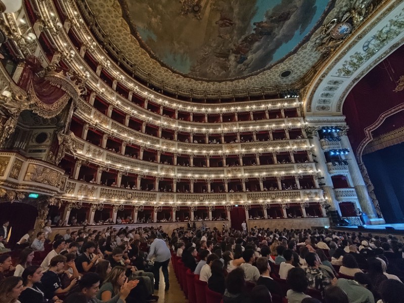 閉会式終了後は、海外からの招待学校に集合がかけられました。今回、このイベントを企画・運営した中心メンバーから、直々に全員に、このイベントに至るまでの経緯と感謝の言葉をいただきました。イタリアの教育の未来に熱い思いをもって取り組まれたことが強く伝わってくる、素晴らしいスピーチでした。今回、招待した学校をベースとして今後もこのような取り組みを続けて行き、活動を広げていきたいので、引き続き協力をおねがいしたい、という主旨のメッセージもありました。もしかしたら、今後もイタリアへの招待をいただくこともあるかもしれません。ひとまず、24時間近く書けて日本へ帰ります。