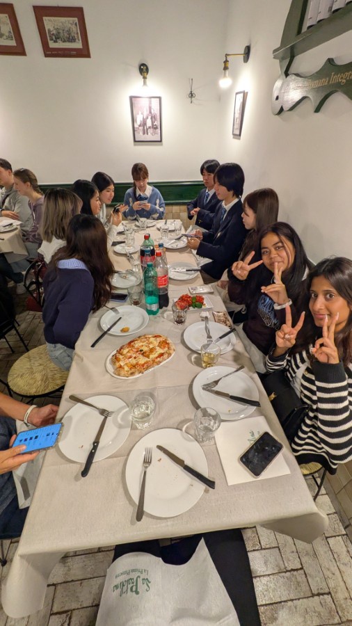 イタリア・ローマで10月27日~10月30日まで行われる、Julibee of Educationに本校の生徒が10名招待されました。10月25日の早朝、関西国際空港に集合し、上海でのトランジットの末、合計約16時間のフライトを経てローマに到着しました。イタリア時間の10月25日の20時30分にホテルに到着しました。チェックインの際につたえられたのは、明日26日の夜中の3時から冬時間になるので、2時に変更します、ということでした。そのため、10月26日からは日本との時差が8時間になります。