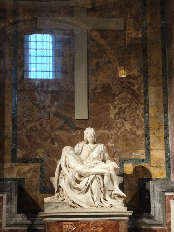 こちらが普段閉じている「聖なる扉」と、そこから入ってすぐにある、ミケランジェロの代表作「ピエタ像」。