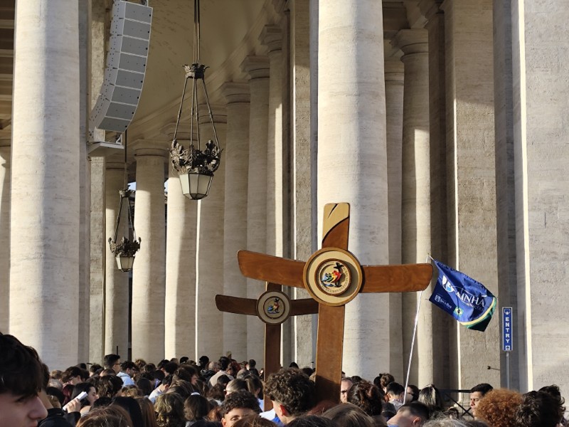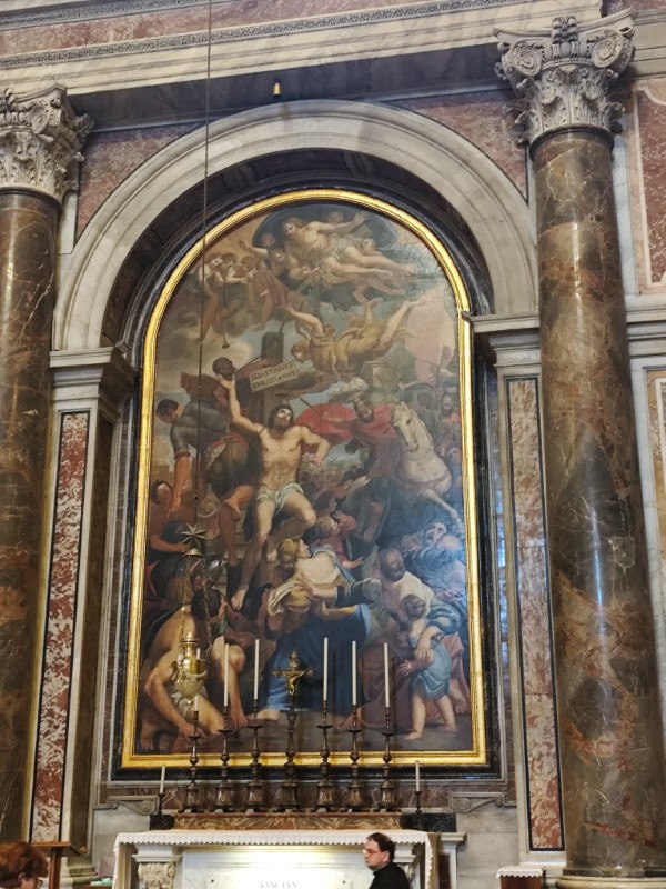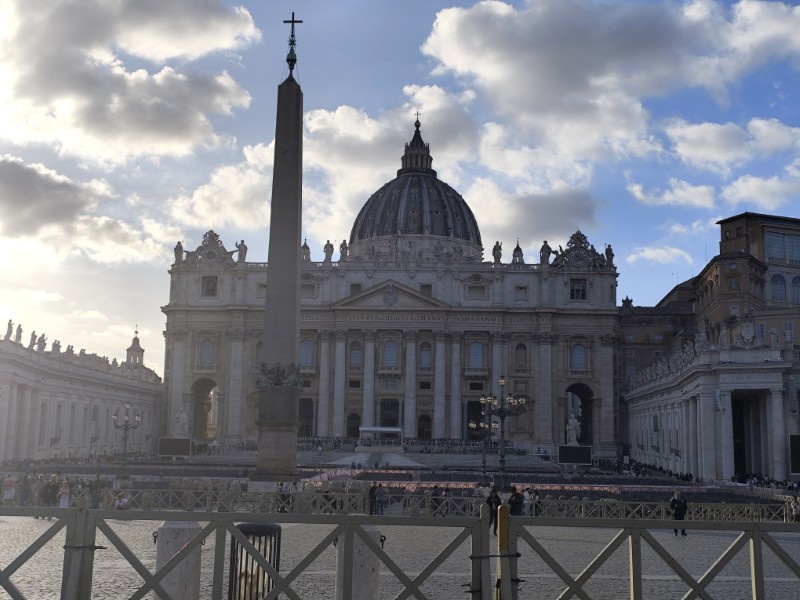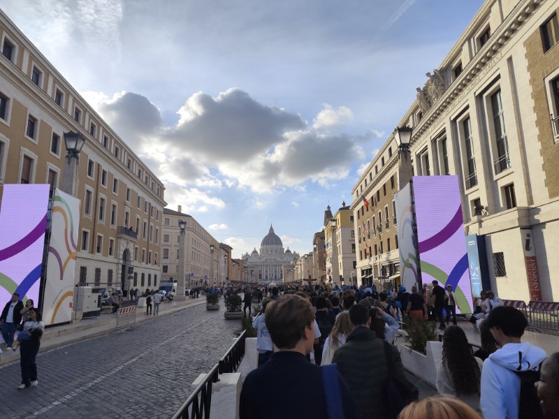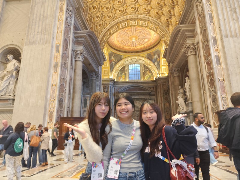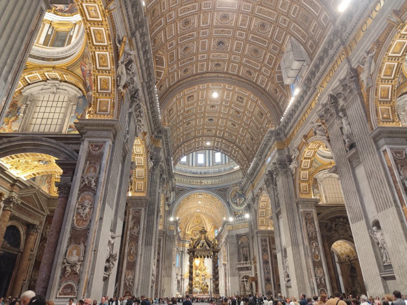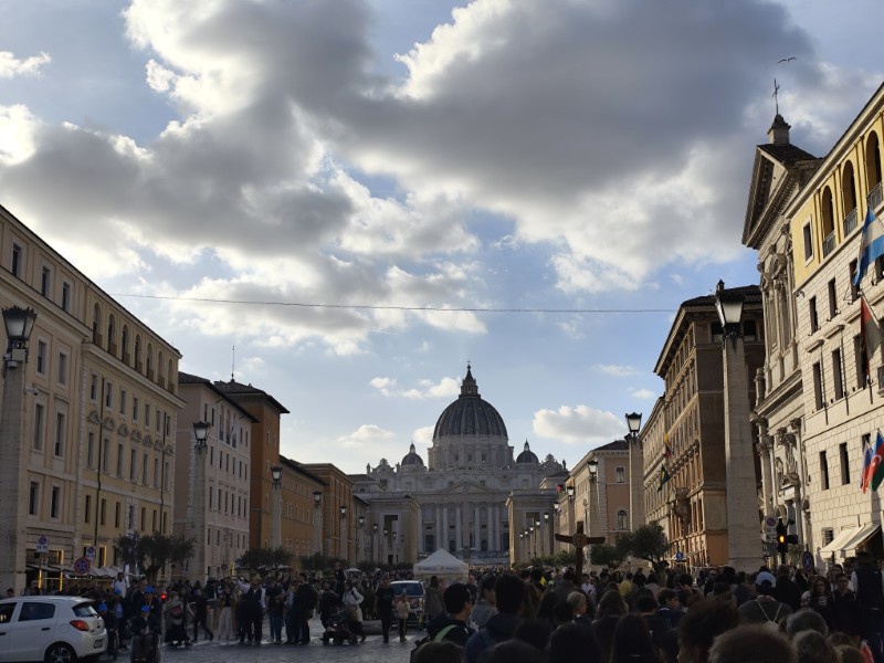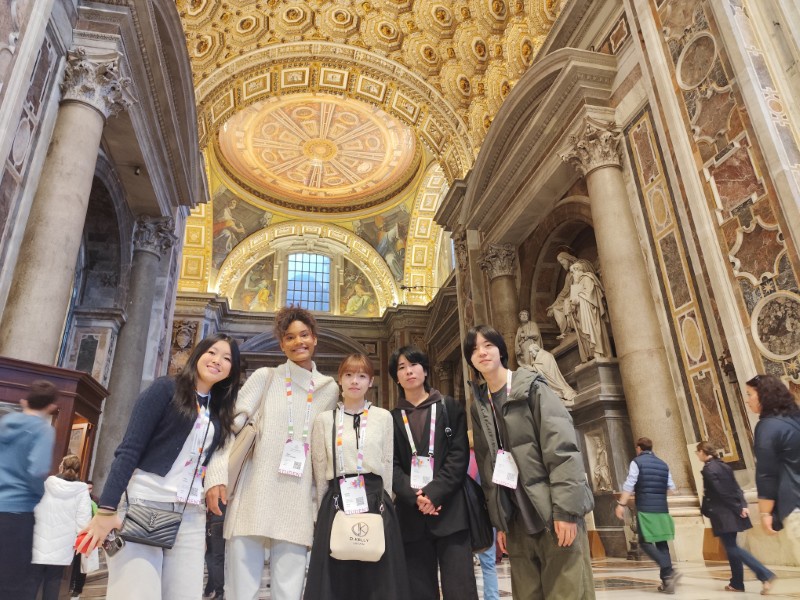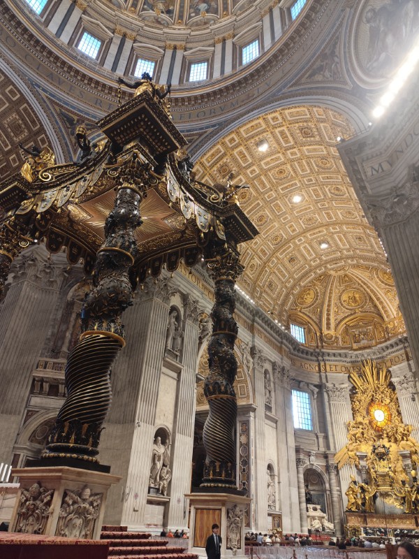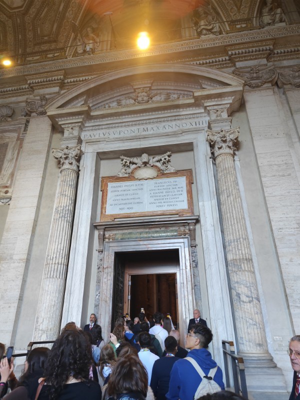 昼食後、午後は、サンピエトロ寺院の見学をしました。今回のイベントにもついているJubileeとは「ヨベルの年」ということで、50年周期のお祝いのことを指しているようで、2025年はカトリック教会にとっての聖年だそうです。それにちなんだ教育のイベントということで、未来ある若者を中心に行われています。そして、今年は25年ぶりに「聖なる扉」が開かれ、巡礼の大きな目的となっているようでした。とても貴重な機会に呼んでいただいたようで、イタリアの先生方も非常に興奮しており、一般の観光客と同じように写真を撮っていました。