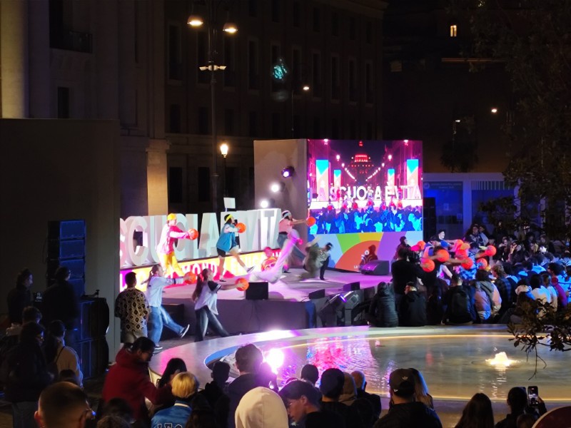 夜は、21時から野外ステージでカジュアルなクロージングセレモニーということで、イベントが開催されました。すべてイタリア語で行われたので、内容を追うことはできませんでしたが、若者が未来に力強く進んでいくことためのエールを送るスピーチであったり、パフォーマンスでした。22:30頃終了しましたが、明日は、パウロ6世記念ホールで閉会式のため7時10分集合のため、あわただしく最終日を迎えます。