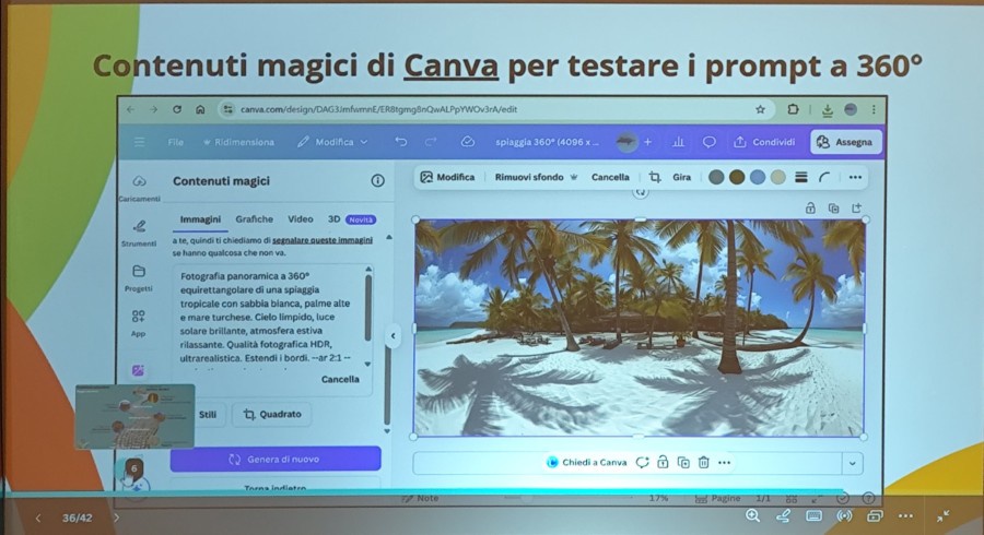 教員のワークショップでは、講師役の先生方が実際にそれぞれの学校に戻って少しでも役に立つ、使えるものを持って帰ってもらおうと、実際に生成AIのアプリケーションや無料のソフトと、その使い方を教えてくれました。360°の画像の作成や、Googlemapからのダウンロードできるソフト、さらにその画像にデータの挿入等の加工のできるソフト、本校でも研修で使用したNotebookLMの使い方など、非常に実践的な内容でとても参考になりました。教員研修というと、比較的グループワークを求められる場合が多いですが、このように講義型でインプットの時間も必要かつ有効であることを、身をもって体験し、とても充足した2時間でした。