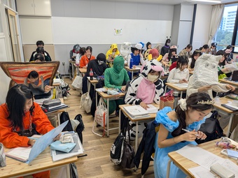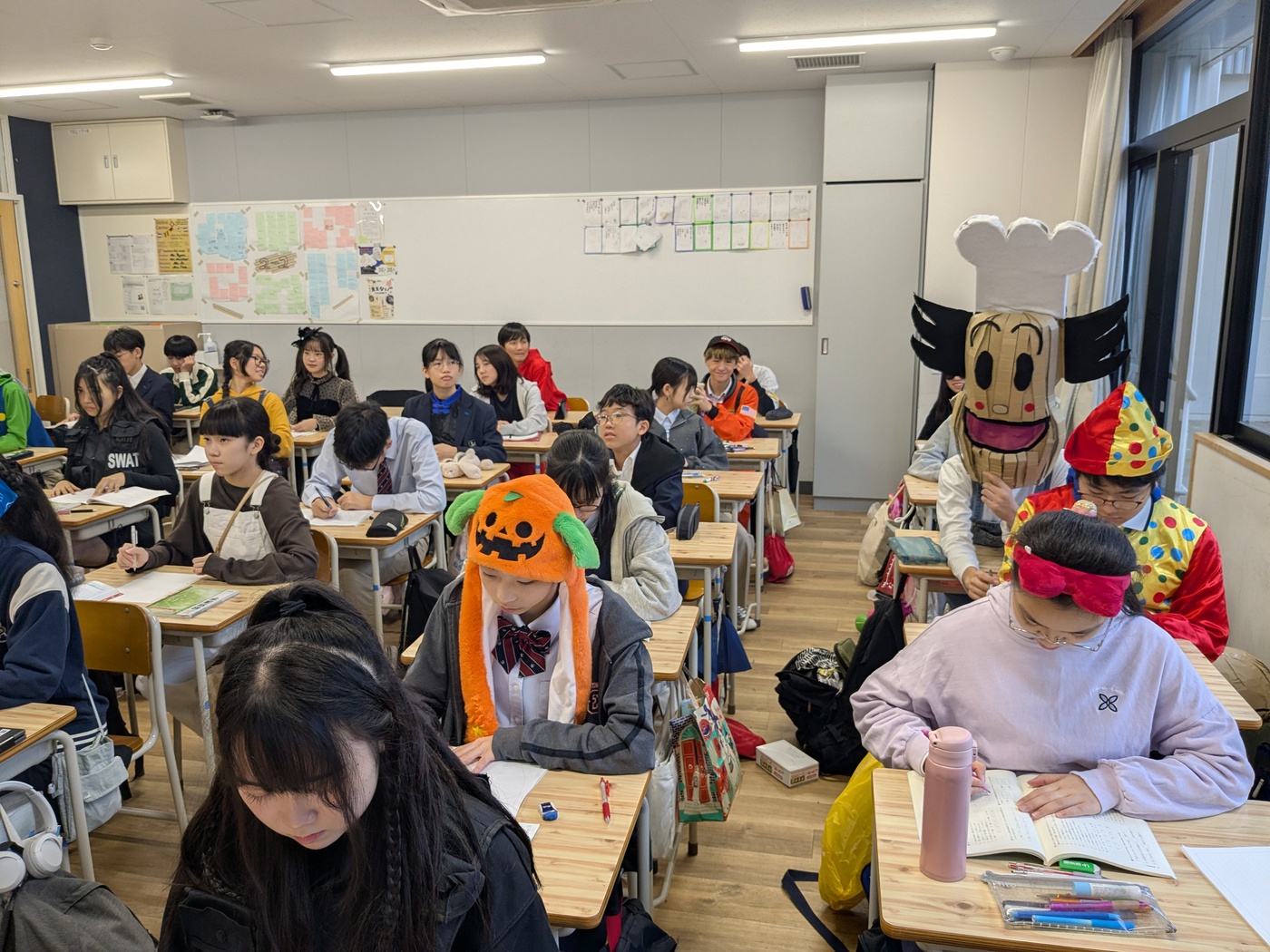 2025/11/20 共通 NEW 今年もHalloweenを開催しました。 今年も本校ではハロウィンを開催しました! ハロウィンの日は年に一度の仮装をして過ごす特別な日であり、水都生だけでなく教職員も思い思いの仮装で一日を過ごします。 授業中の教室も、休み時間の廊下も仮装した水都生とスタッフが溢れる愉快な非日常を満喫しました。